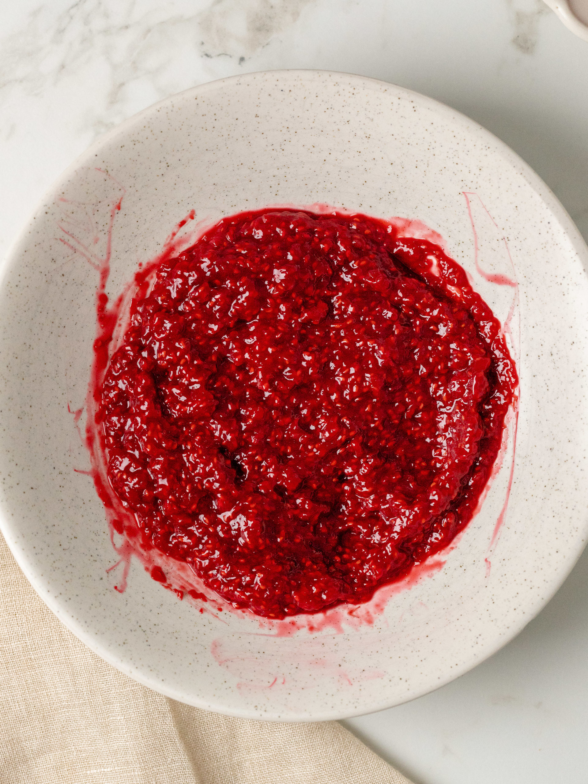 - Start by making the raspberry jam. Add the raspberries, sugar and lemon juice to a saucepan and heat it up until the raspberries are no longer frozen, have started to break down, and the resulting liquid has come to a bubble. Once bubbling, turn it down to a simmer and let it simmer for 8 minutes. Stir occasionally and with a rubber spatula mash down raspberries.250 g frozen raspberries, 50 g granulated sugar, 2 teaspoon lemon juice