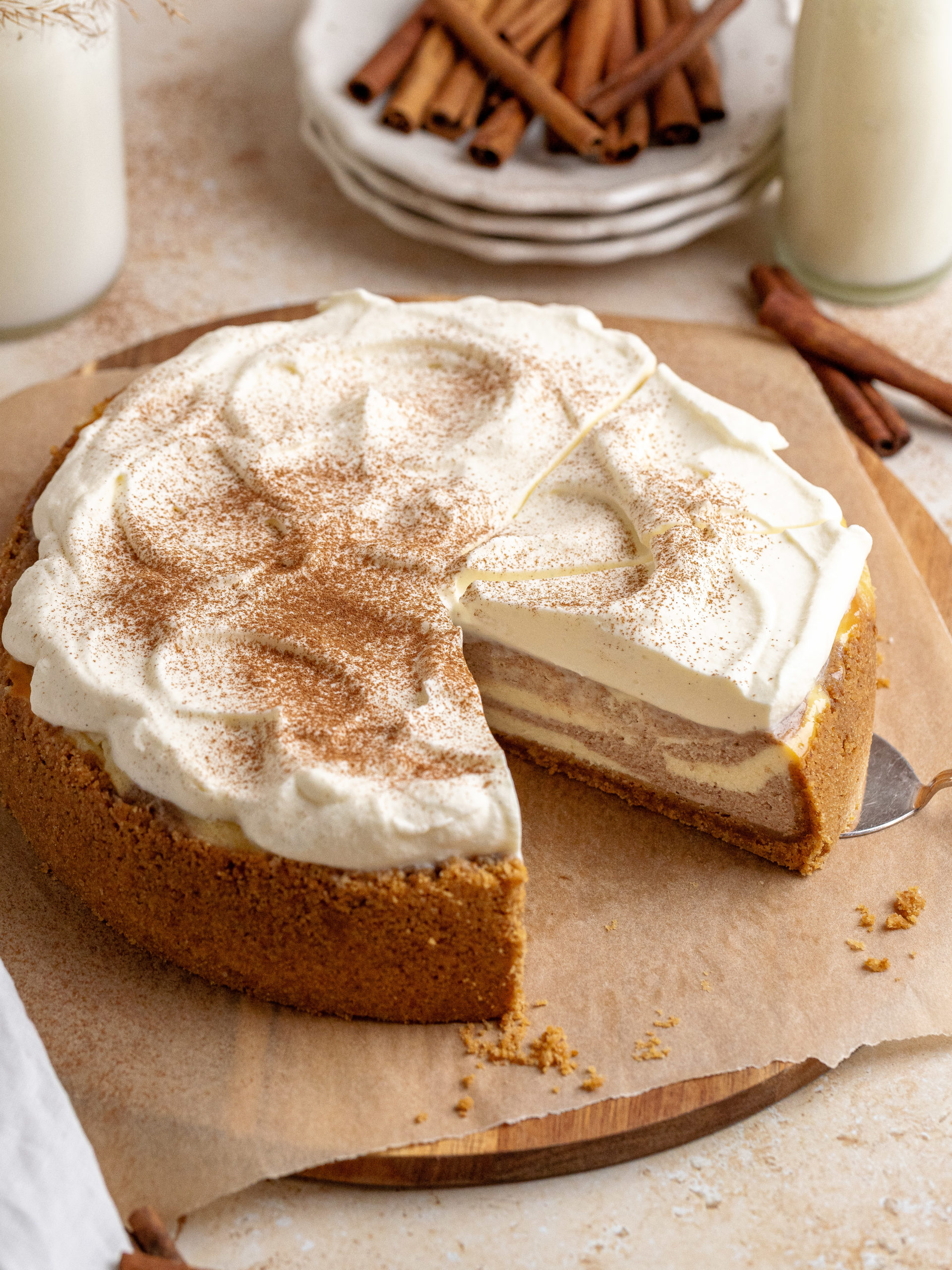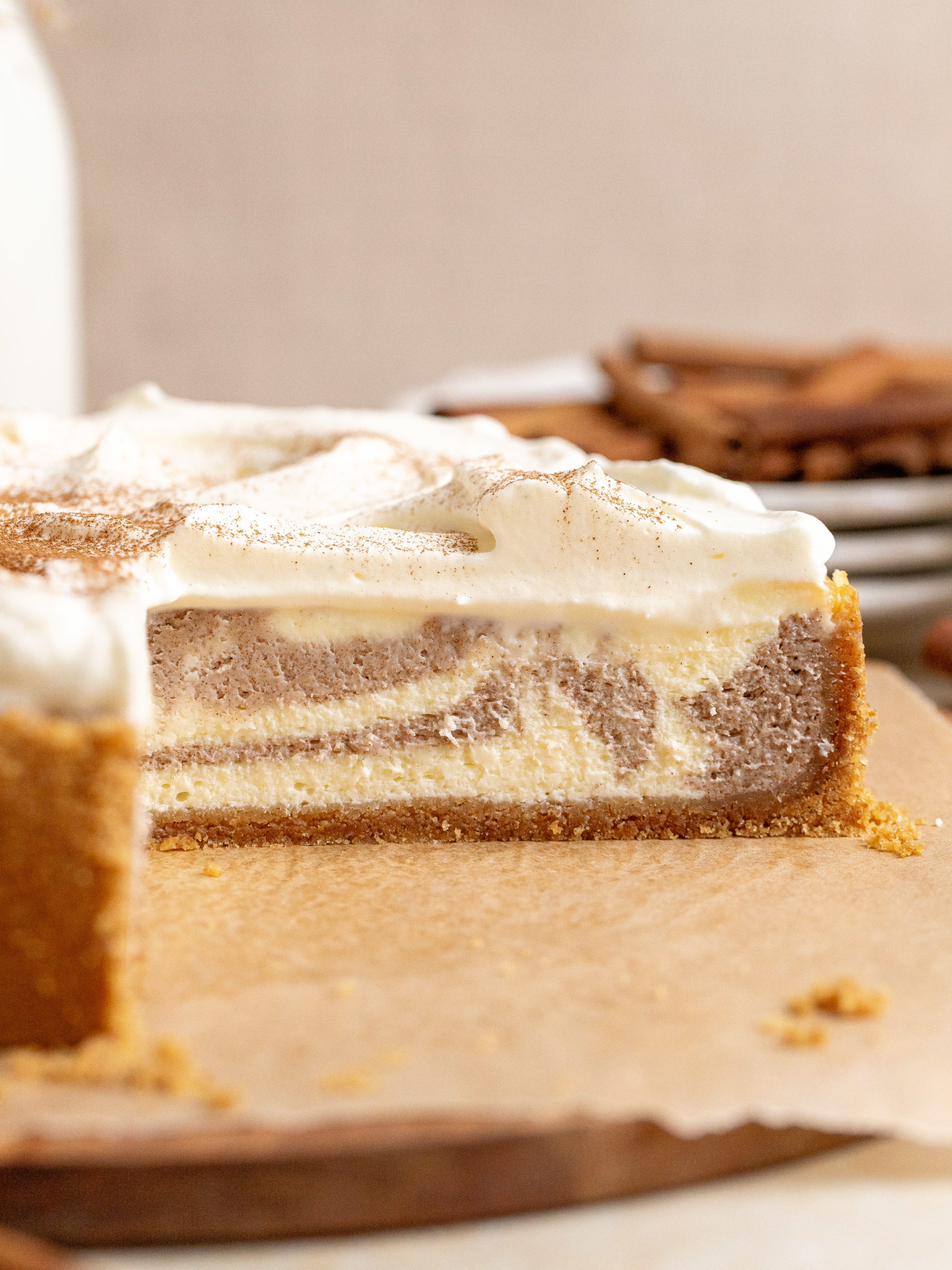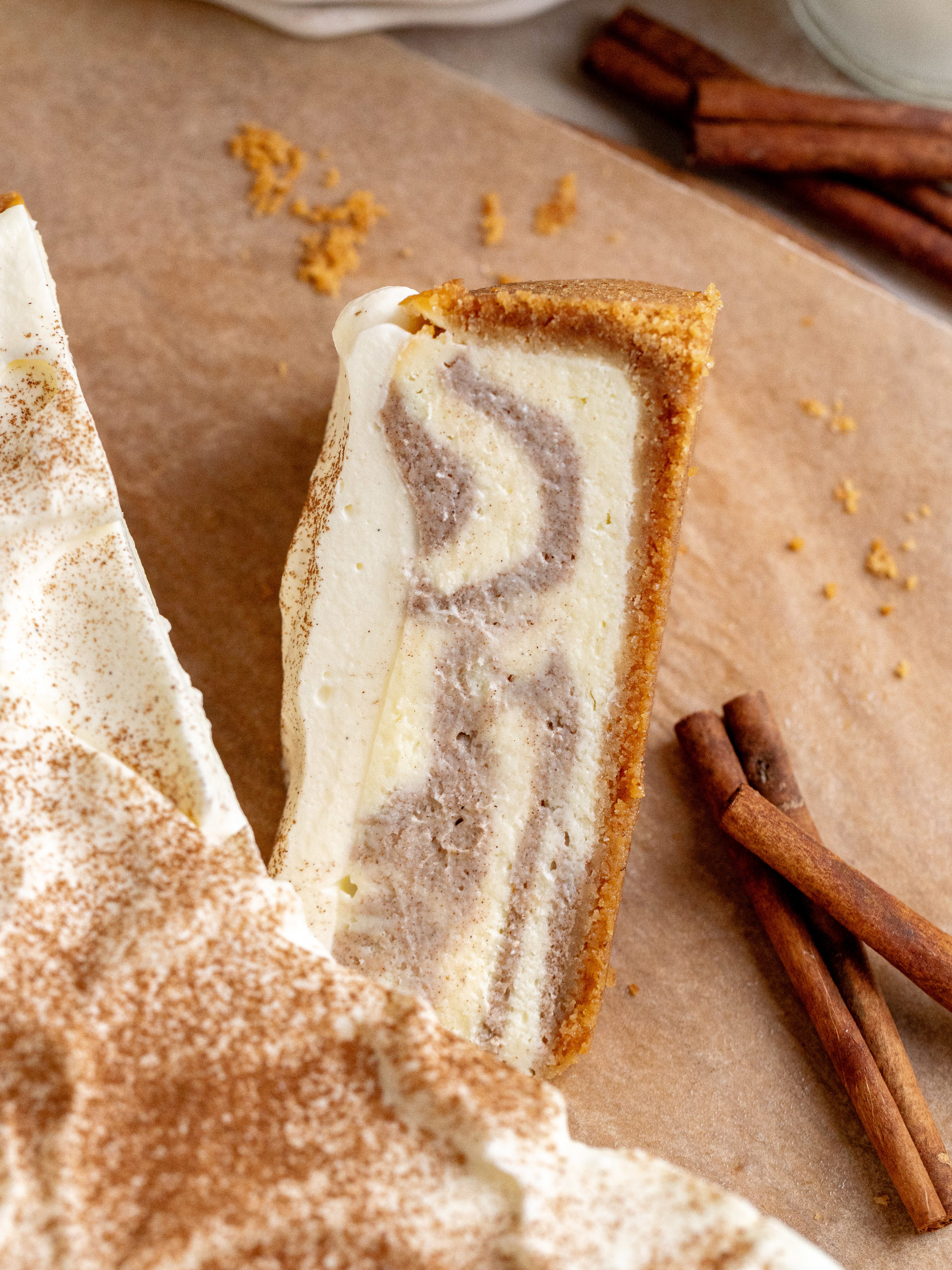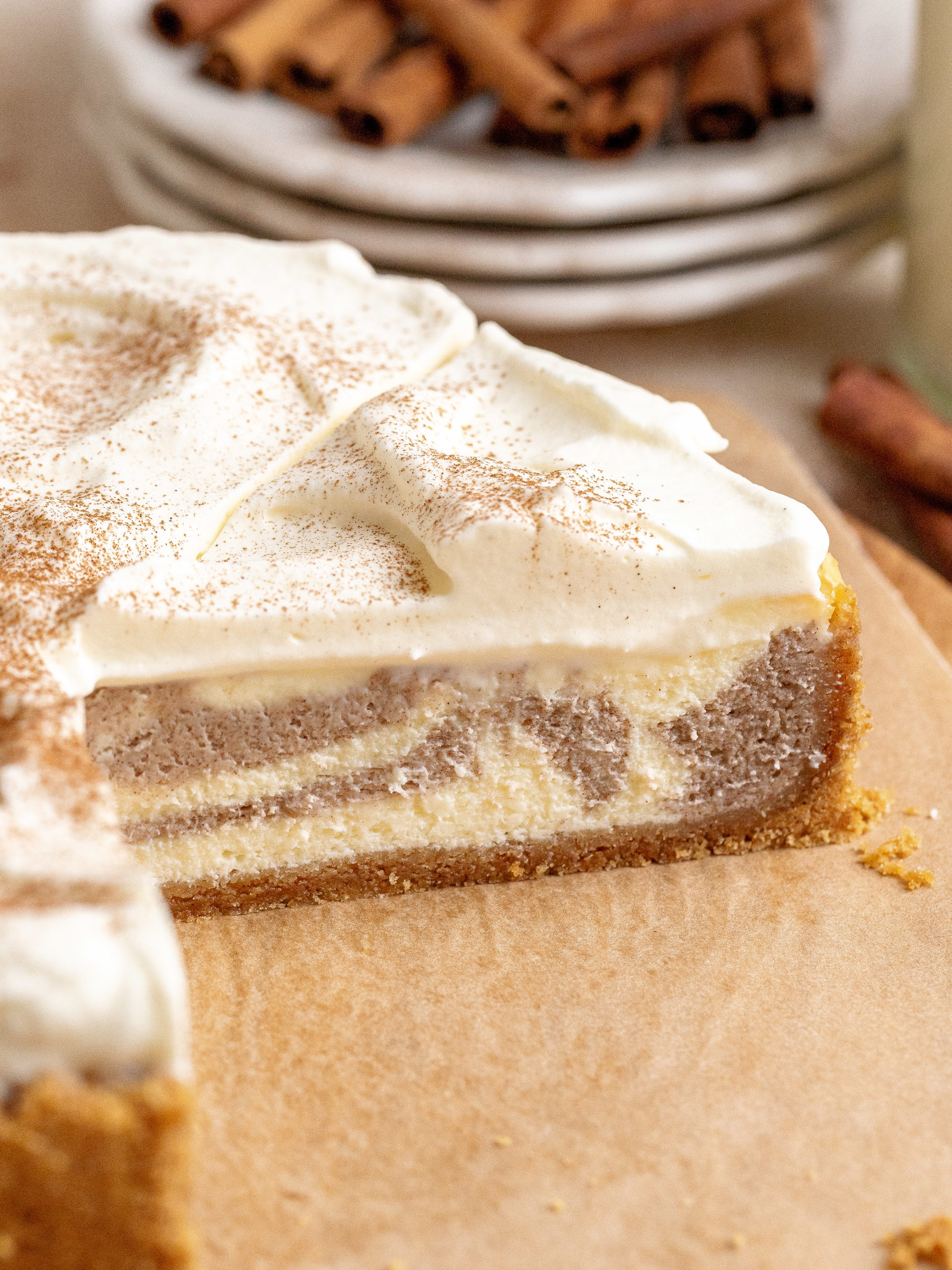 • Cinnamon Cheesecake Filling: This creamy cinnamon cheesecake has a alternating filling of classic cheesecake and cinnamon cheesecake, making a beautiful swirl.