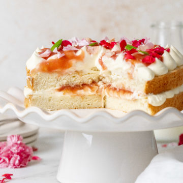 Denne elegante, sæsonbetonede og perfekt afbalancerede lagkage med rabarber og hvid chokolade er en hyldest til forårets smagsoplevelser. Stjernen i kagen er den hjemmelavede rabarberkompot, der ligger mellem lag af saftig vaniljesponge og en lækker, pisket ganache af hvid chokolade. Hvis du har ledt efter en måde at bruge frisk rabarber på, der føles raffineret og moderne, byder denne kombination med hvid chokolade på en fløjlsblød sødme, der passer perfekt til rabarberens karakteristiske syrlighed.
