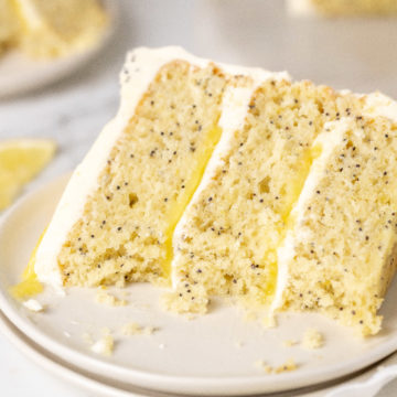 This lemon and poppy seed layer cake is so fresh and tangy and it's a perfect spring cake! It is full of zesty lemon flavor with moist lemon and poppy seed cake layers and a delicious lemon curd. It is paired with a white chocolate buttercream to perfectly balance the tangy flavors of the lemon.