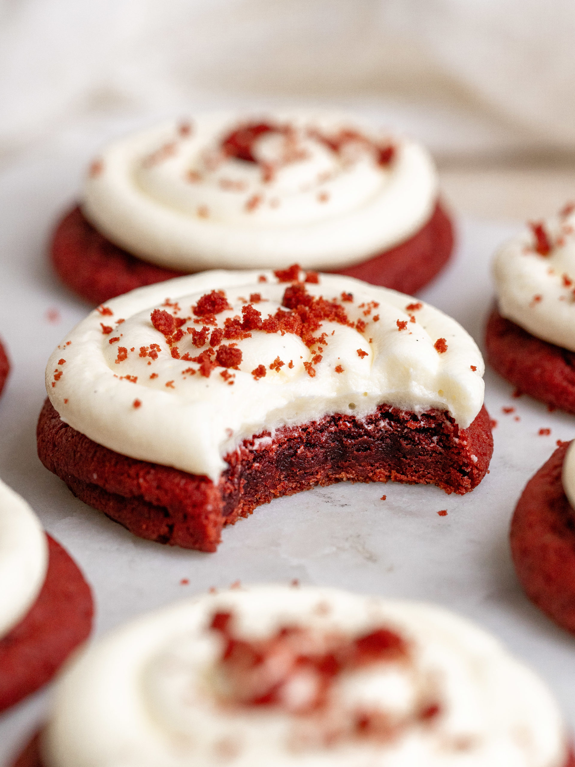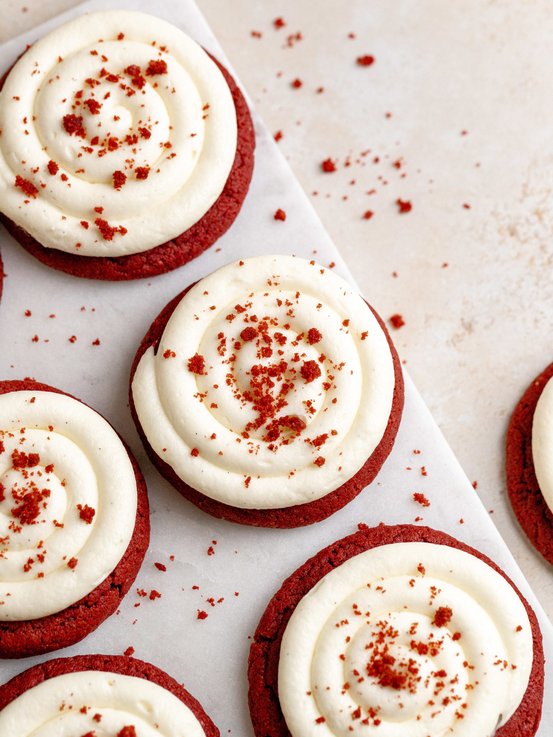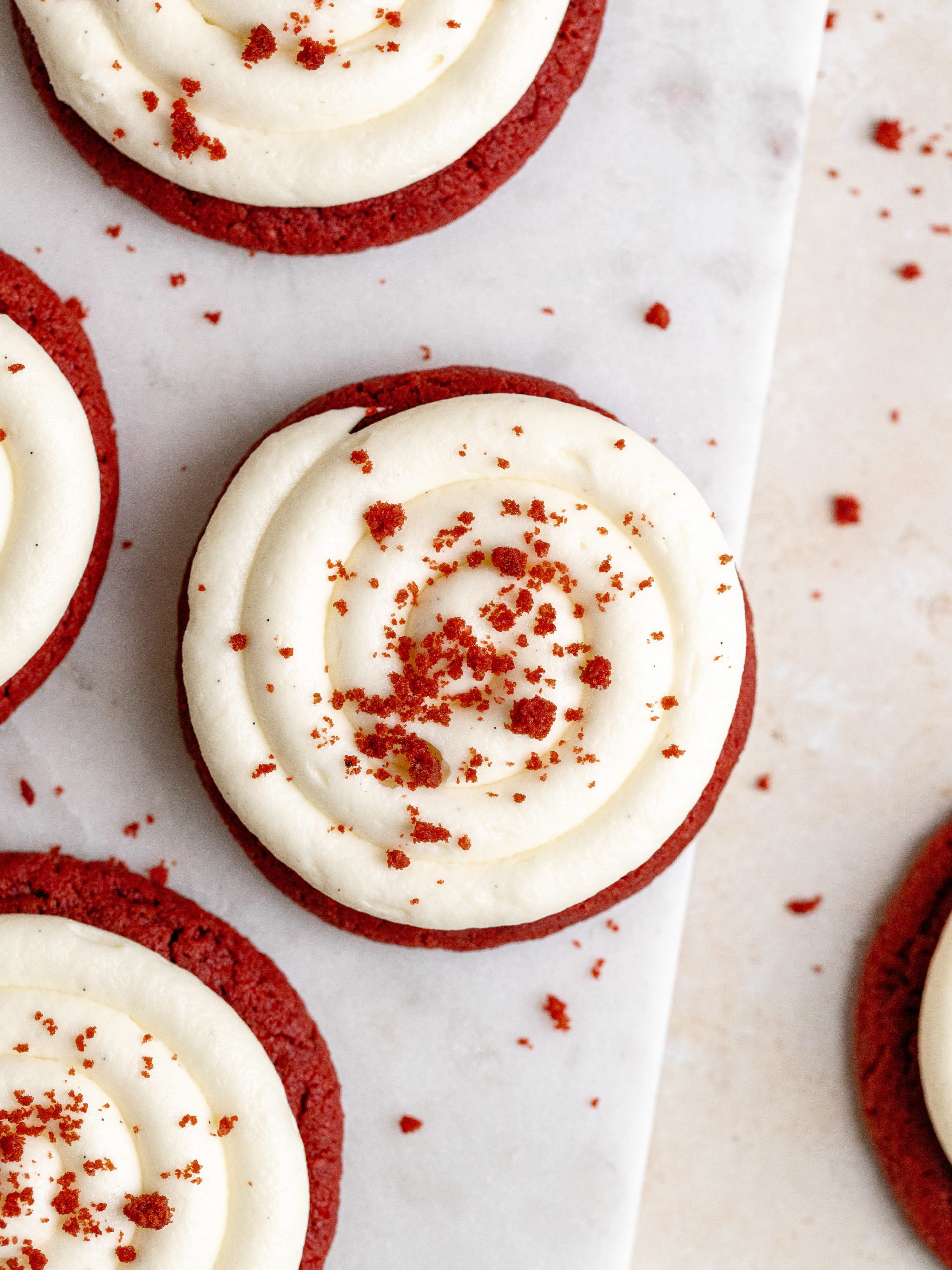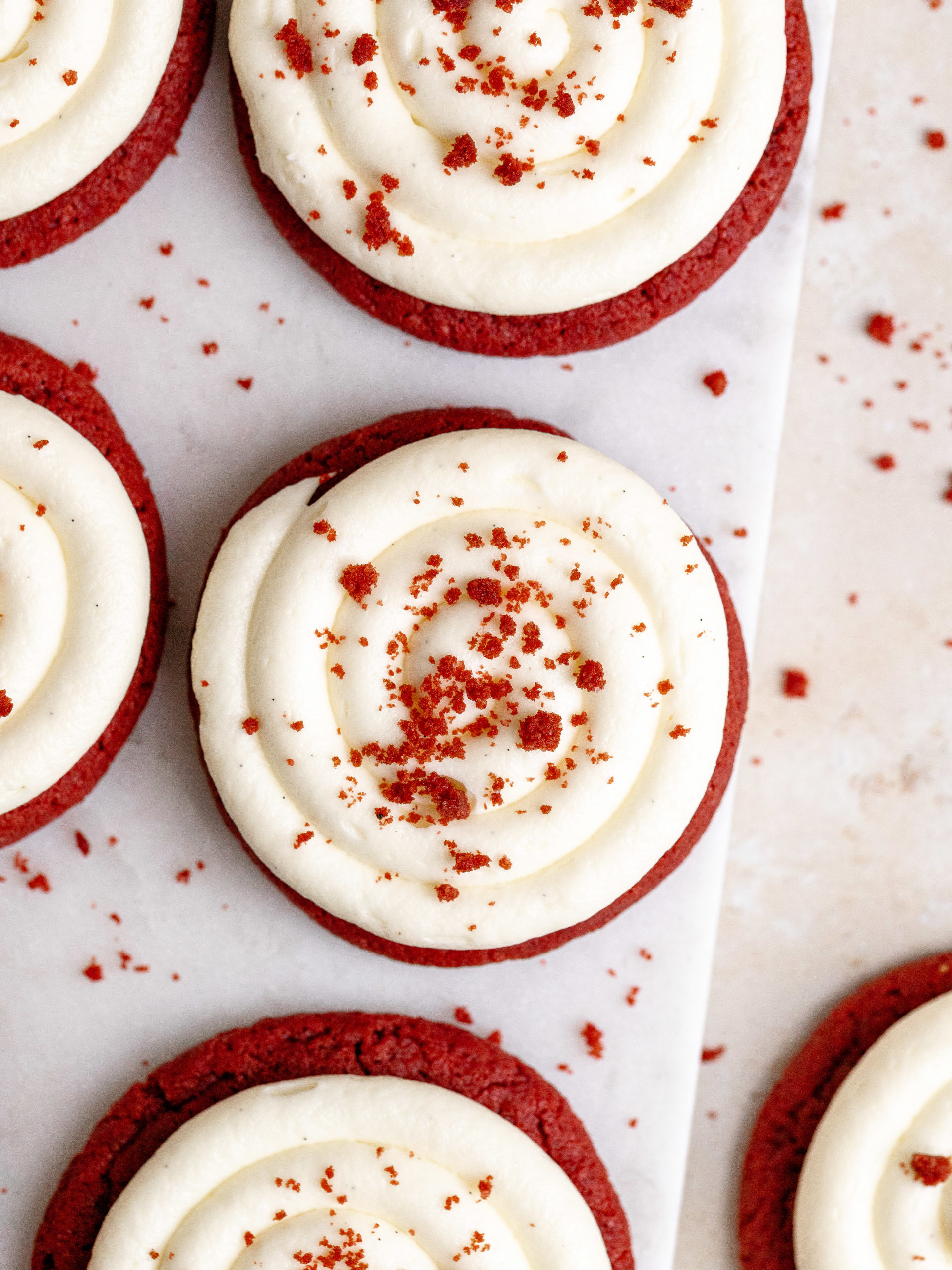 - Cookies: These big and soft cookies tastes like classic red velvet cake.