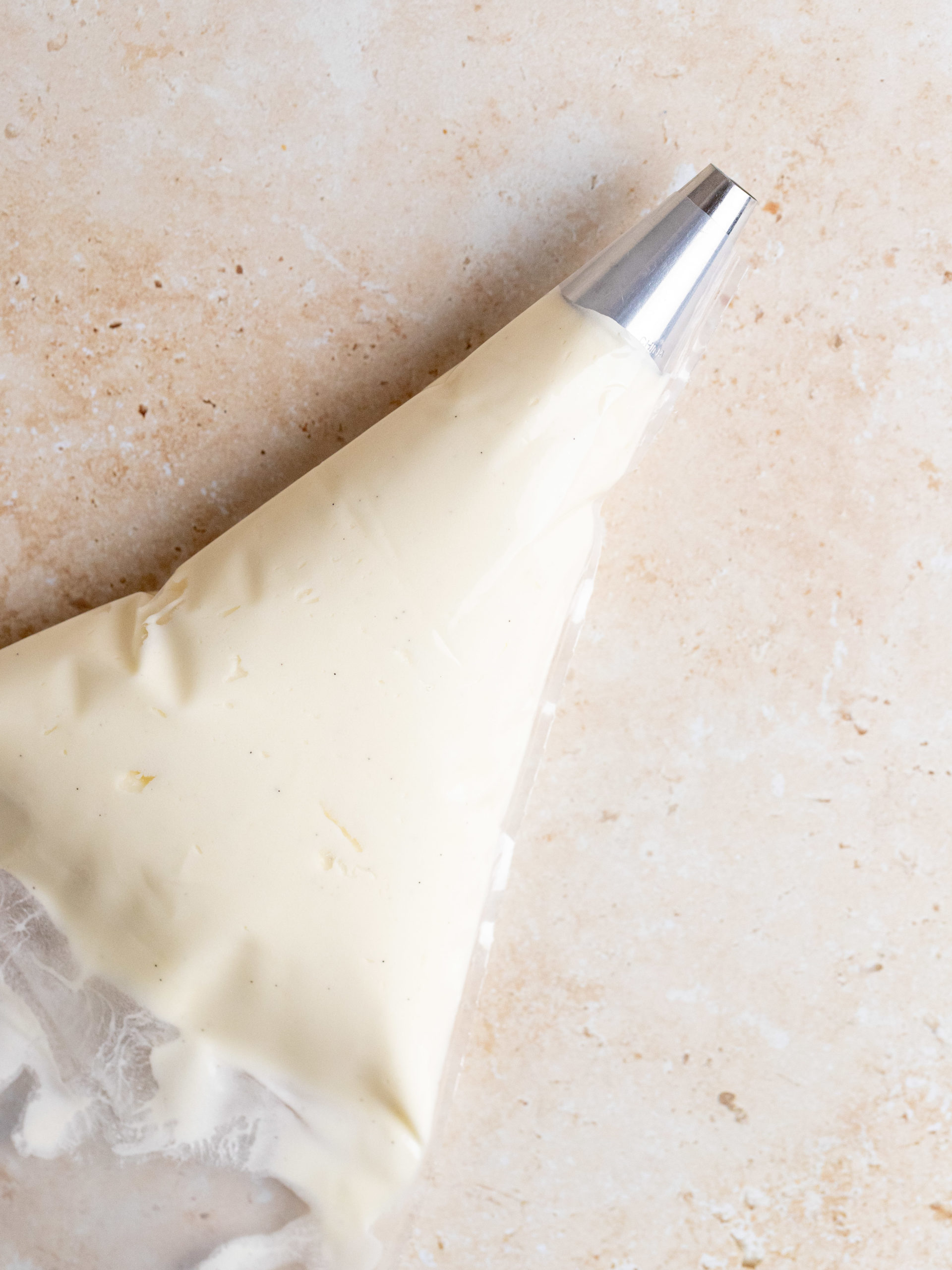 - Add the vanilla bean paste and cream cheese and cream it together with the butter for 1 minute.60 g full-fat cream cheese, ¼ teaspoon vanilla bean paste