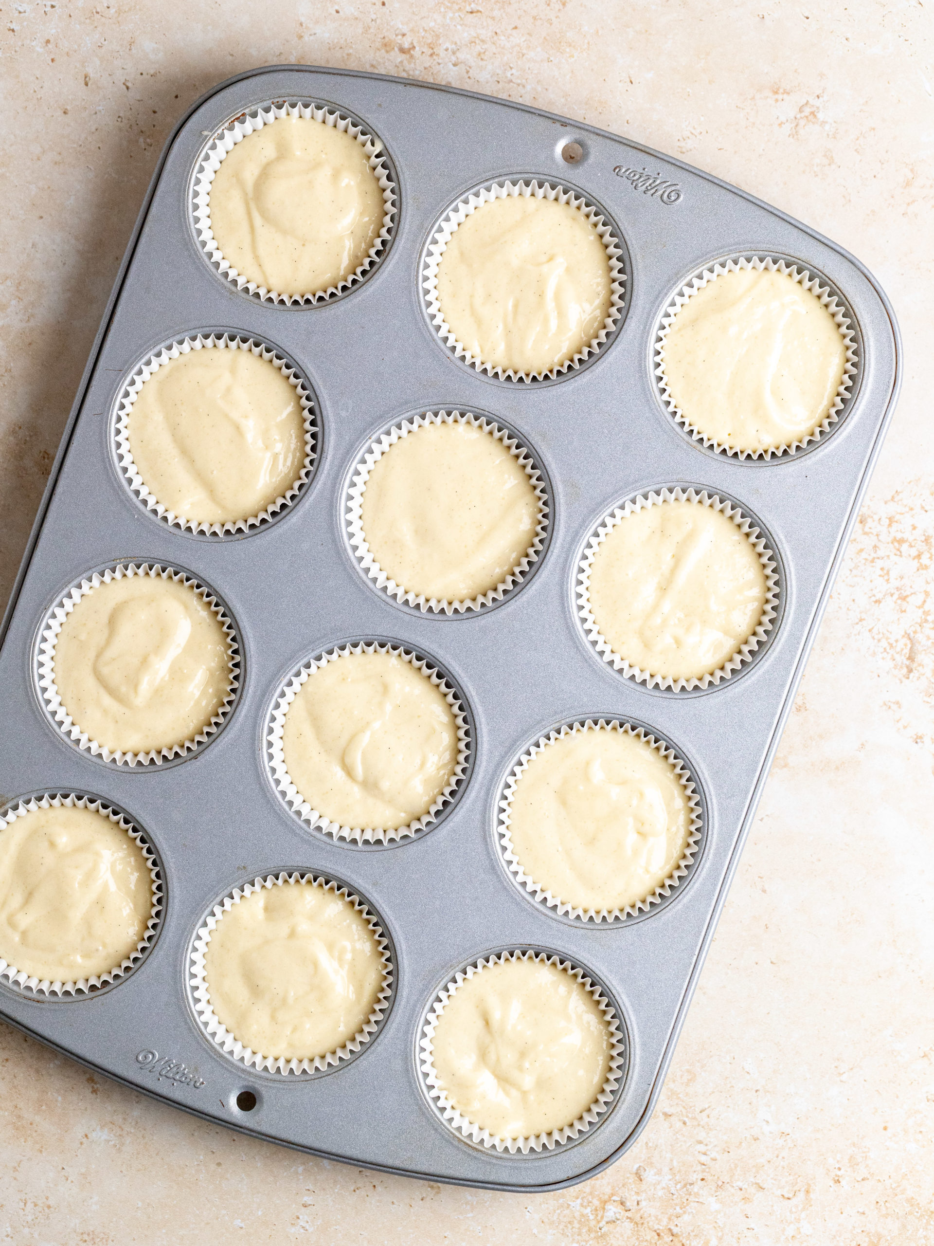 Before starting preheat the oven to 160ºC/ 320ºF conventional oven. Line a 12-cup cupcake tin lined with cupcake paper liners.