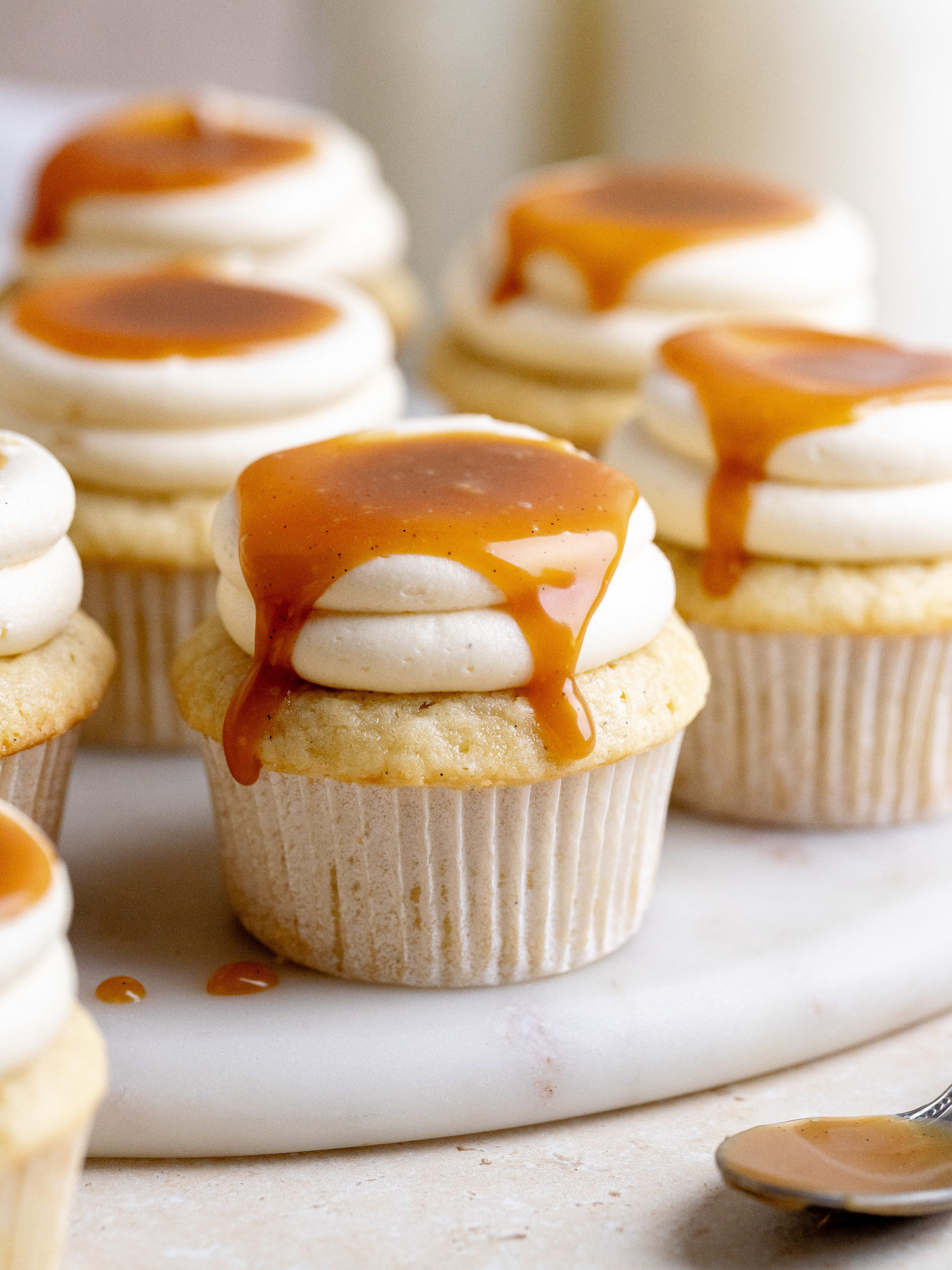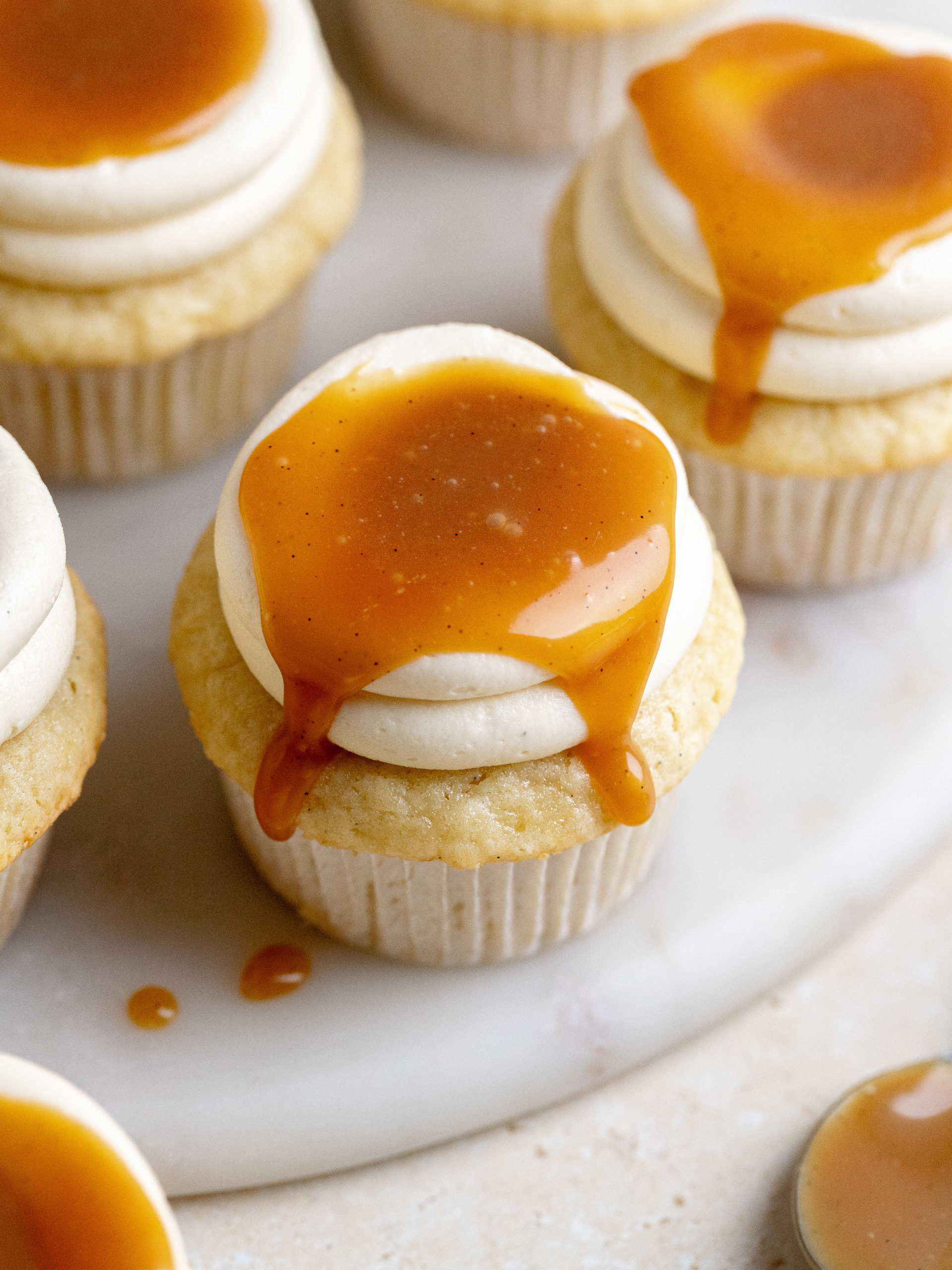This salted caramel cupcakes recipe is a fall dream and for all caramel lovers! These vanilla cupcakes are topped with a salted caramel frosting and lots of salted caramel, giving them lots of caramel flavor and making them perfect Thanksgiving dessert cupcakes. The vanilla cupcakes are super soft and fluffy and complements the delicious salted caramel. They are perfect to serve for Thanksgiving or any occasion during the fall and winter.